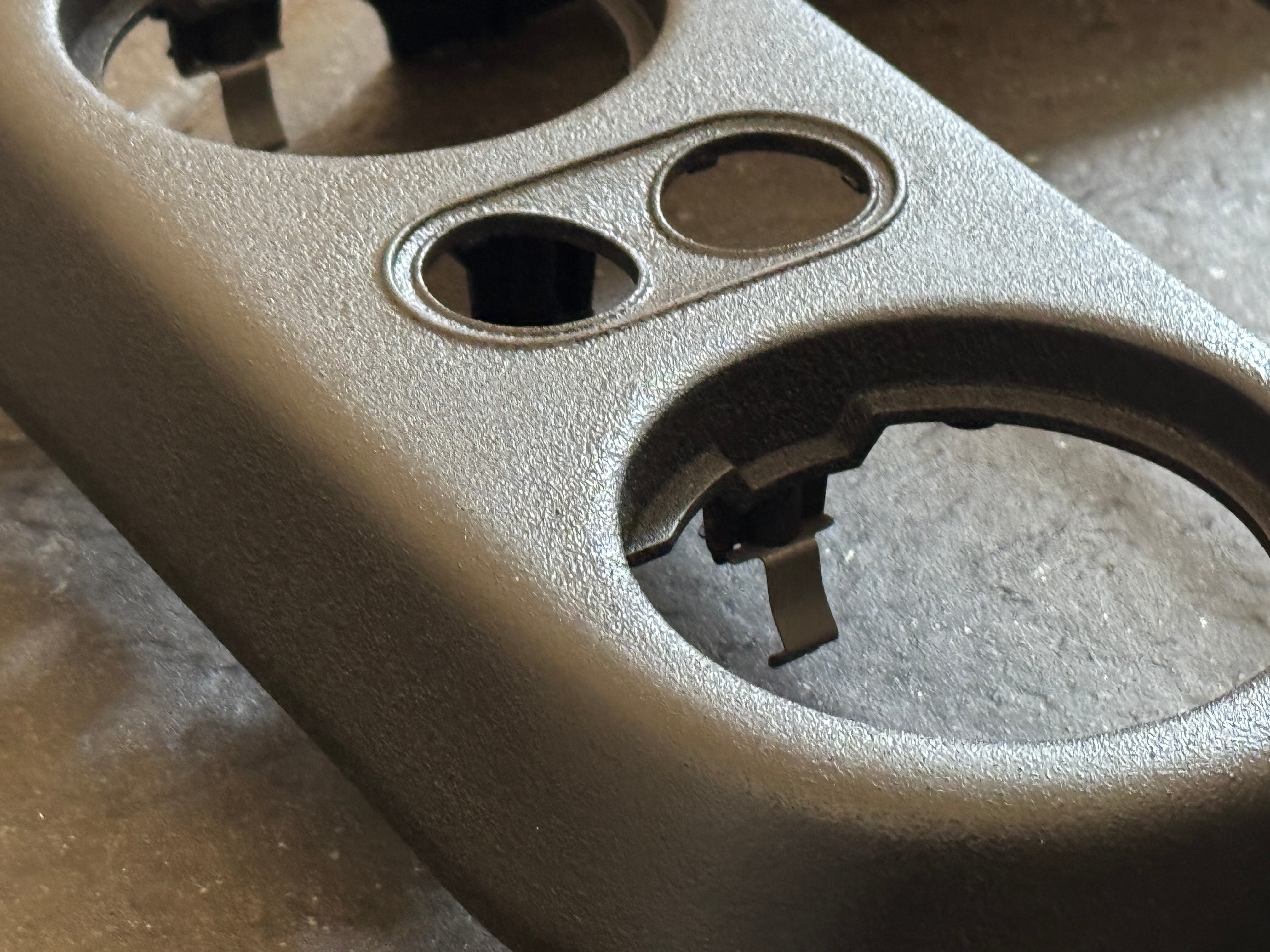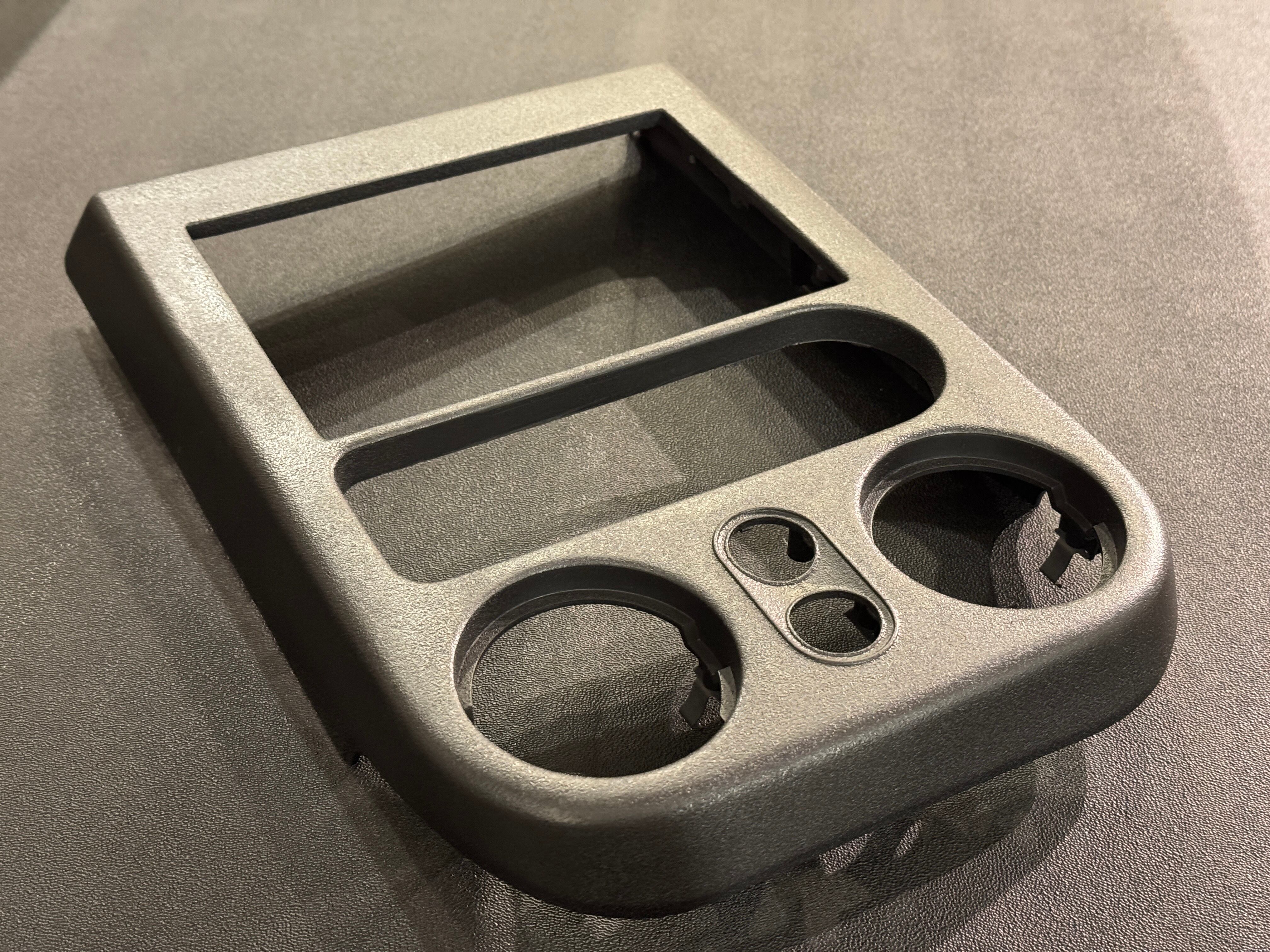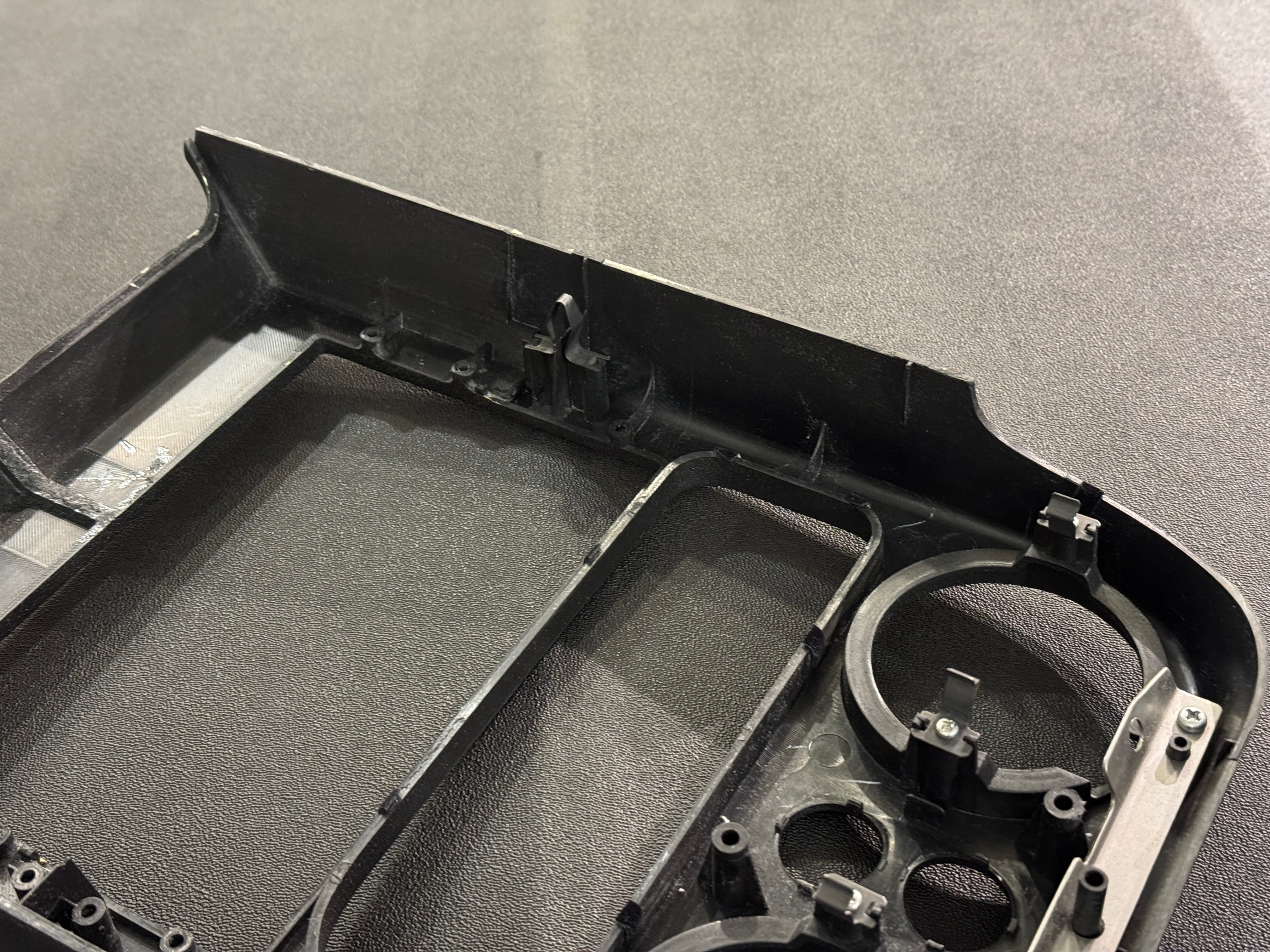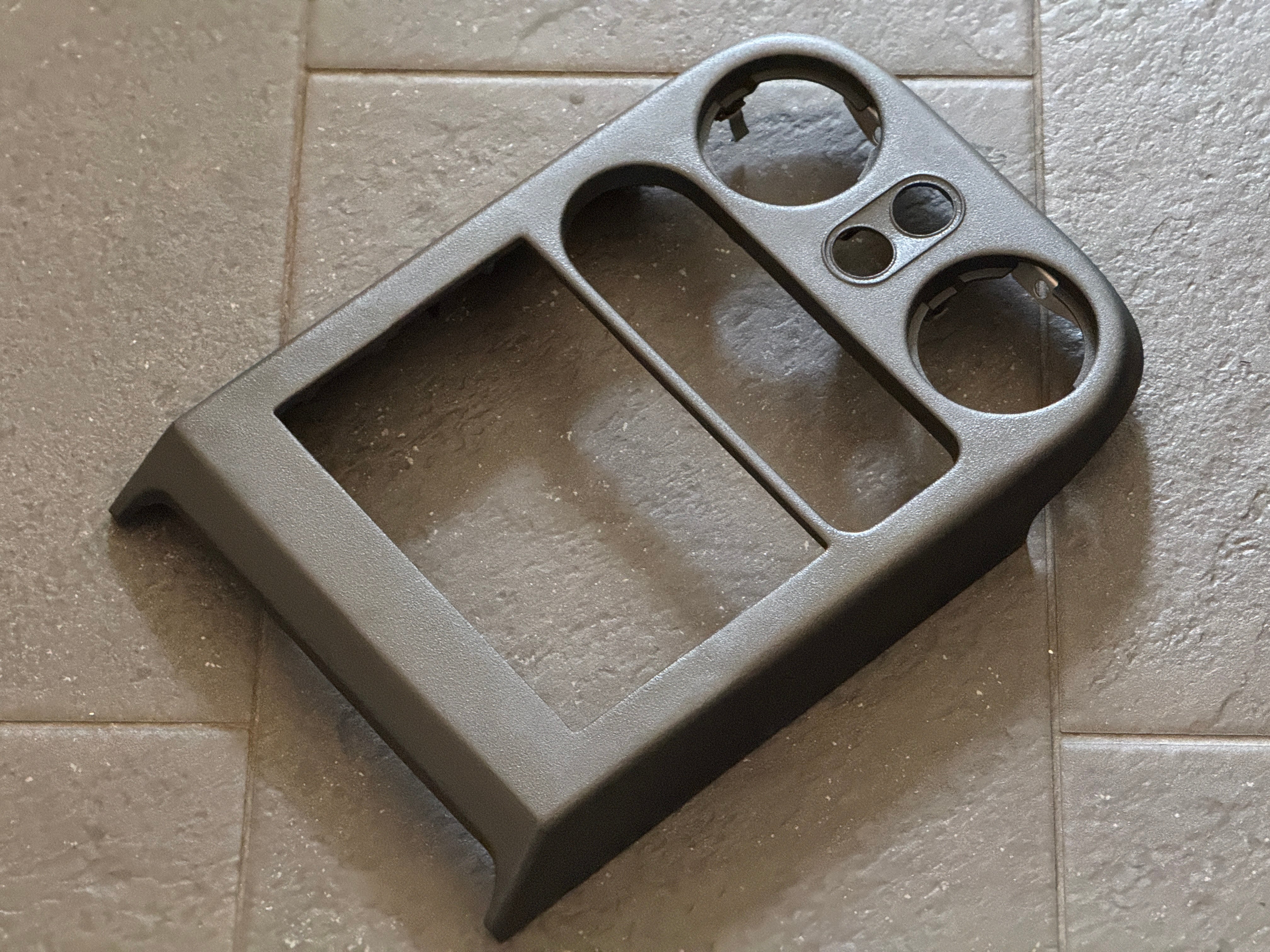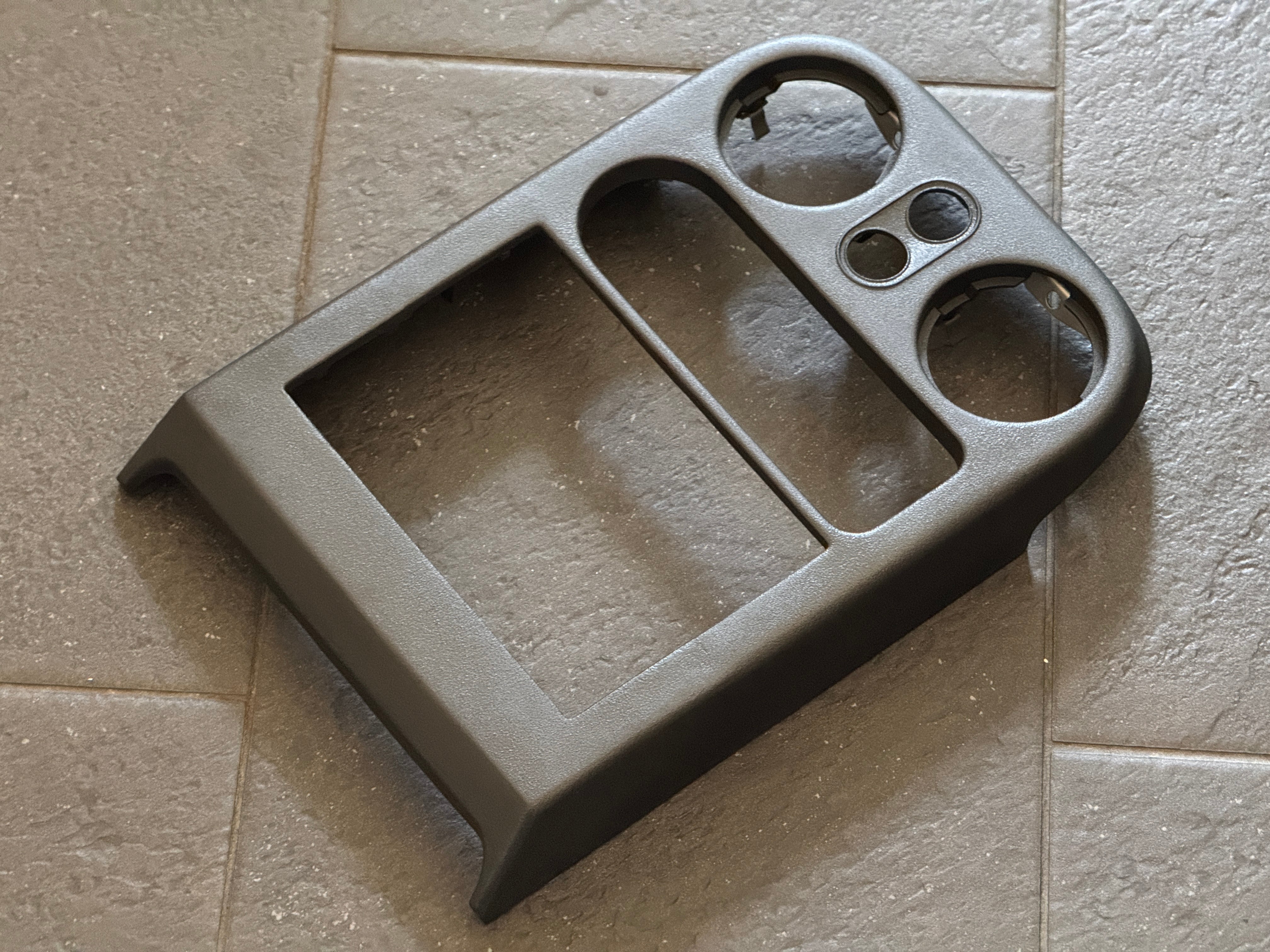 M2 1028のような形状に加工したNAロードスター 用のセンターパネルです。新品を改造しています。3Dプリンタで下半分を整形しています。