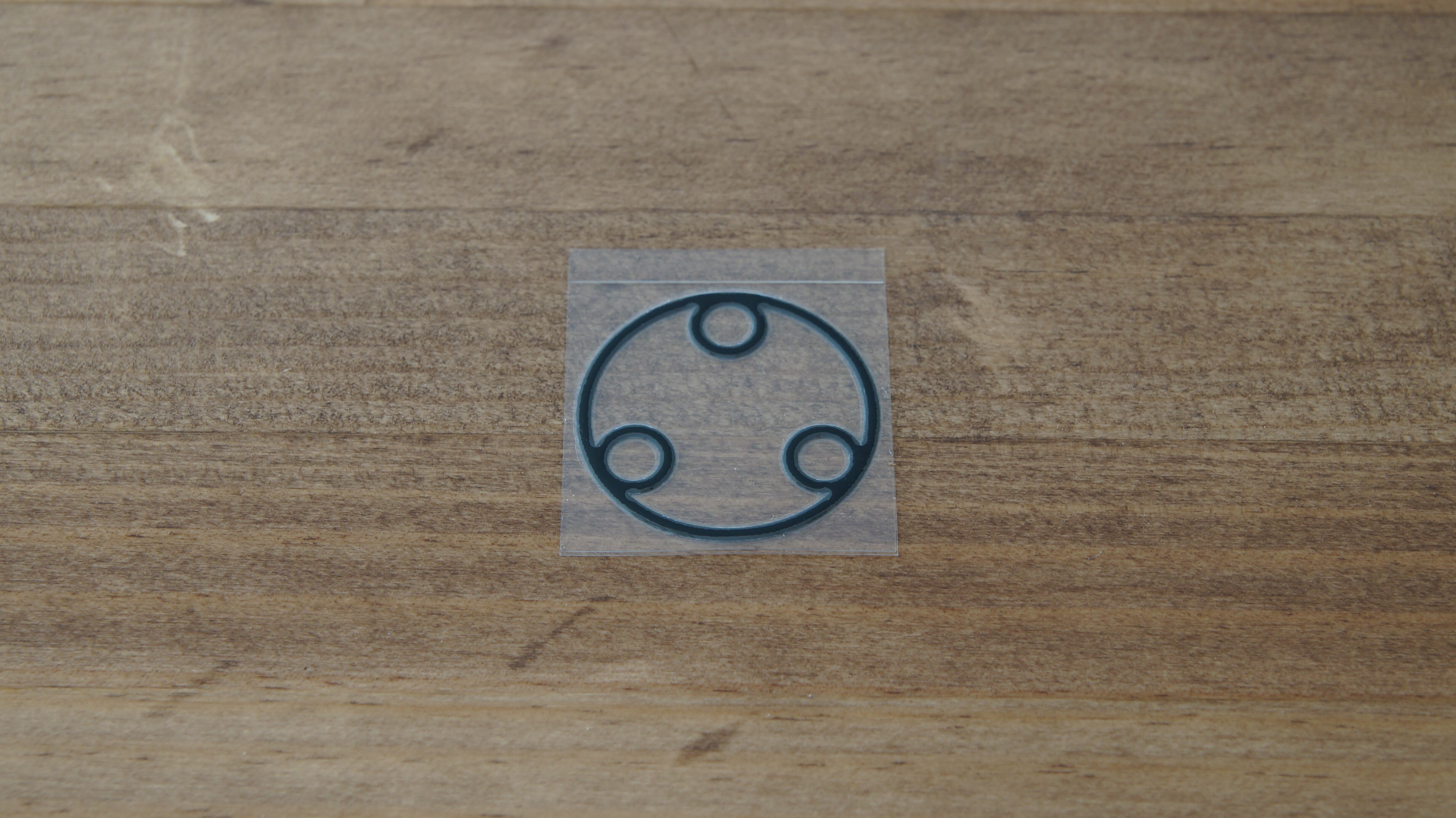 UV硬化樹脂製で耐光性があり、少しコンモリ厚みがあります。