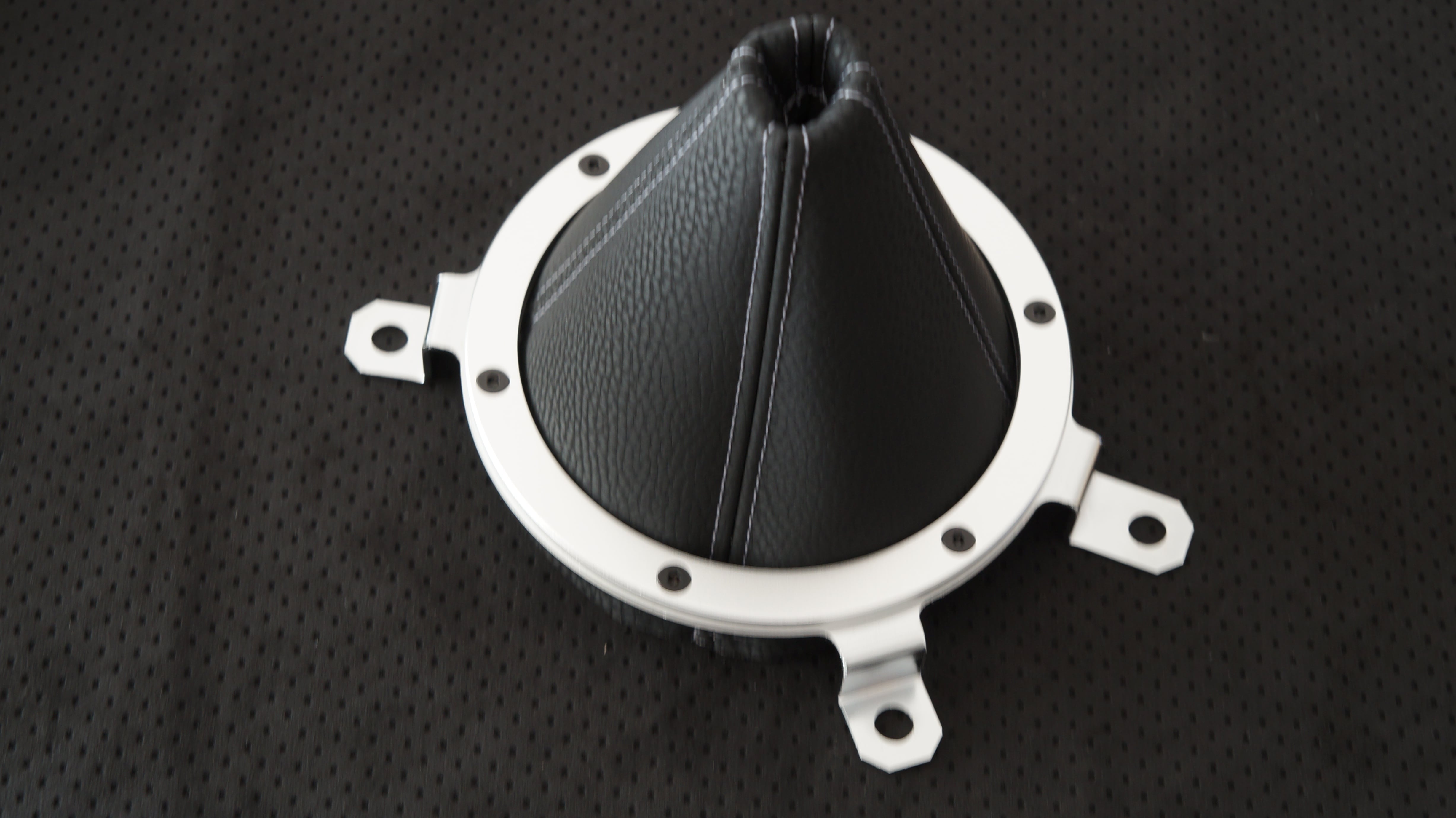 ピガプリモで作成した M2 1028コンソールレスカーペット寸法で作成したシフトブーツです。ステッチの色をお選びください。 ネジ穴など加工が必要となります。 別出品のアルミリングと寸法が合います。