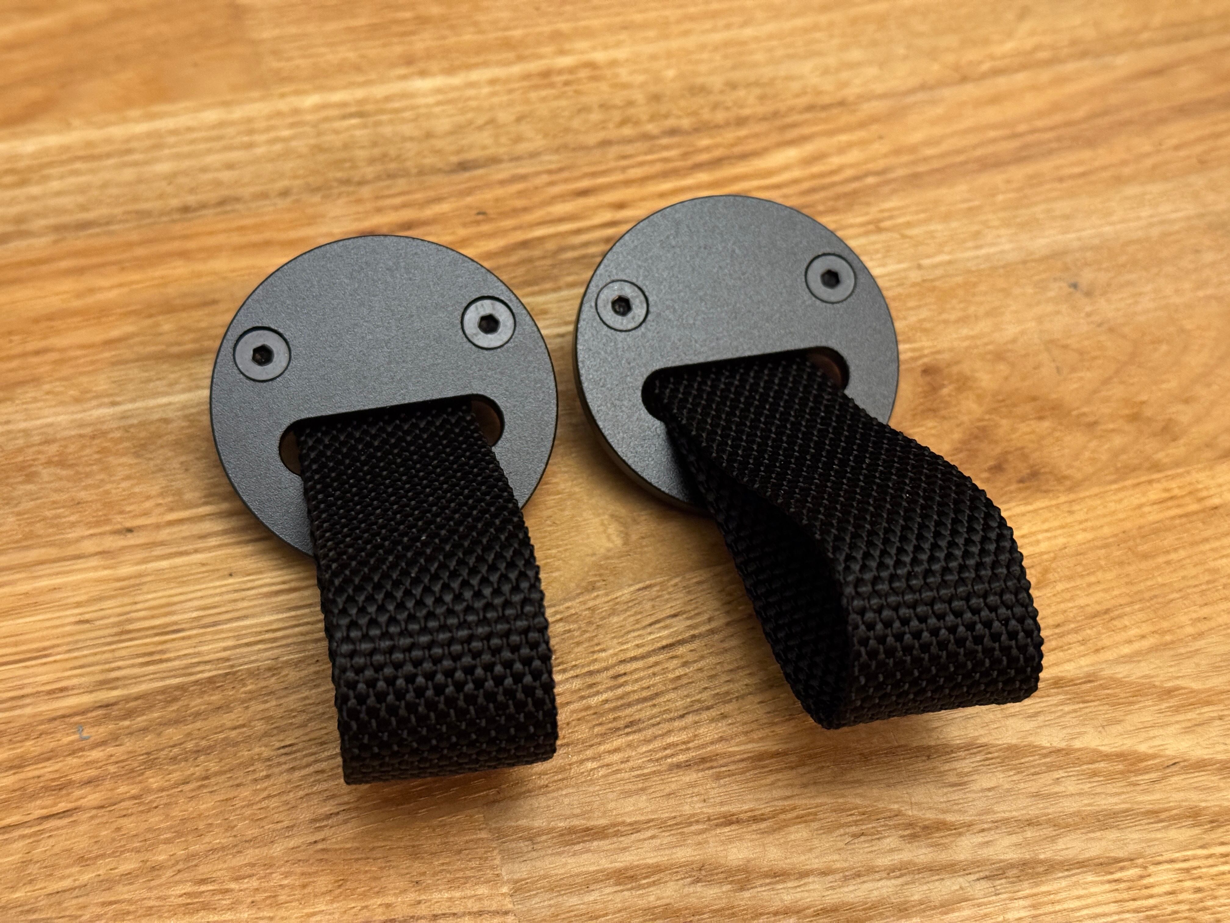 アルミ無垢材から削り出し、サンドブラスト、アルマイト仕上げを施したストラップホール2枚セットです。ポルシェ911GT3RS のインナードアハンドルのデザインを様々な車種のインナードアハンドルとして付加できます。
