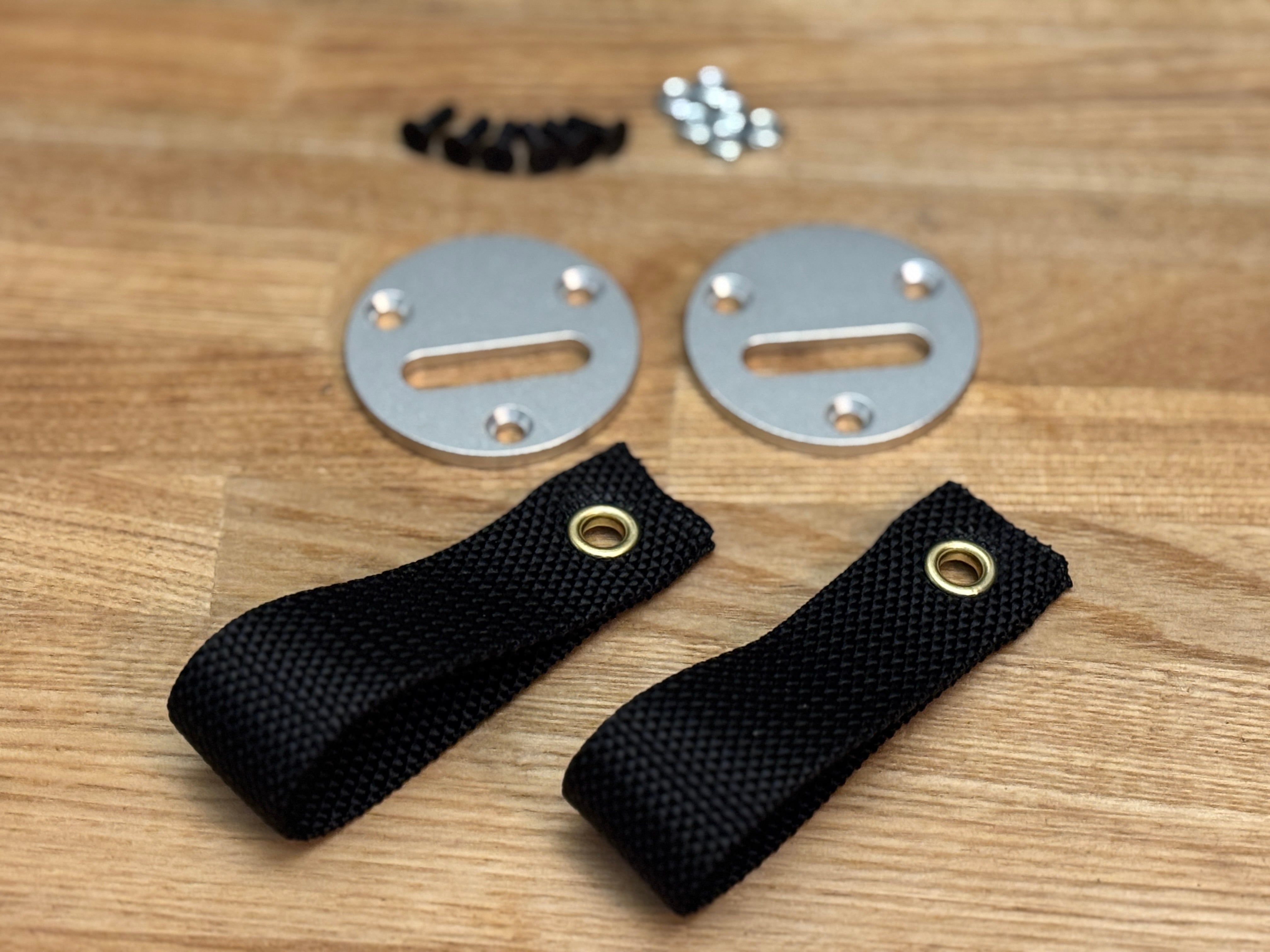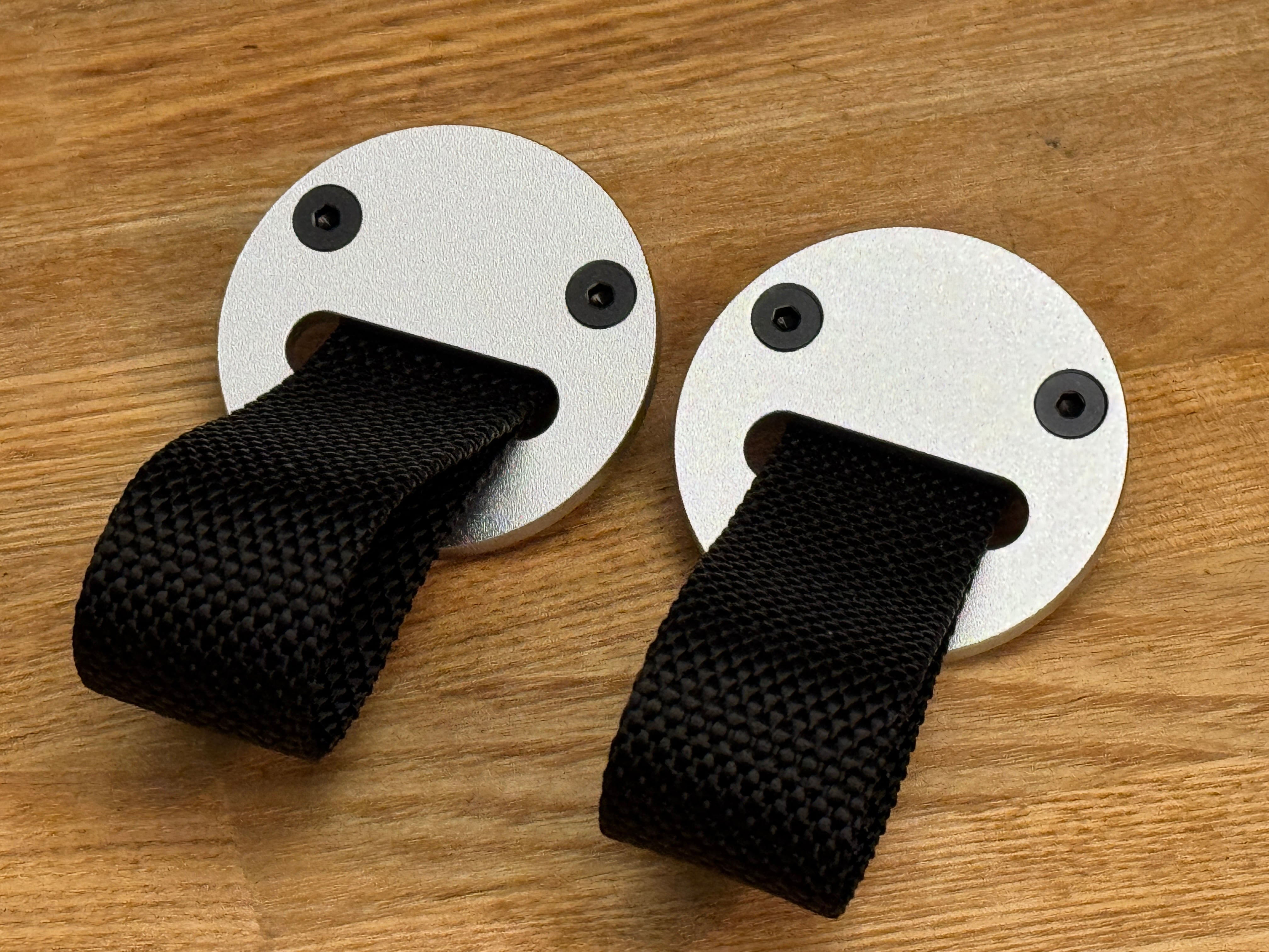 アルミ無垢材から削り出し、サンドブラスト、アルマイト仕上げを施したストラップホール2枚セットです。ポルシェ911GT3RS のインナードアハンドルのデザインを様々な車種のインナードアハンドルとして付加できます。