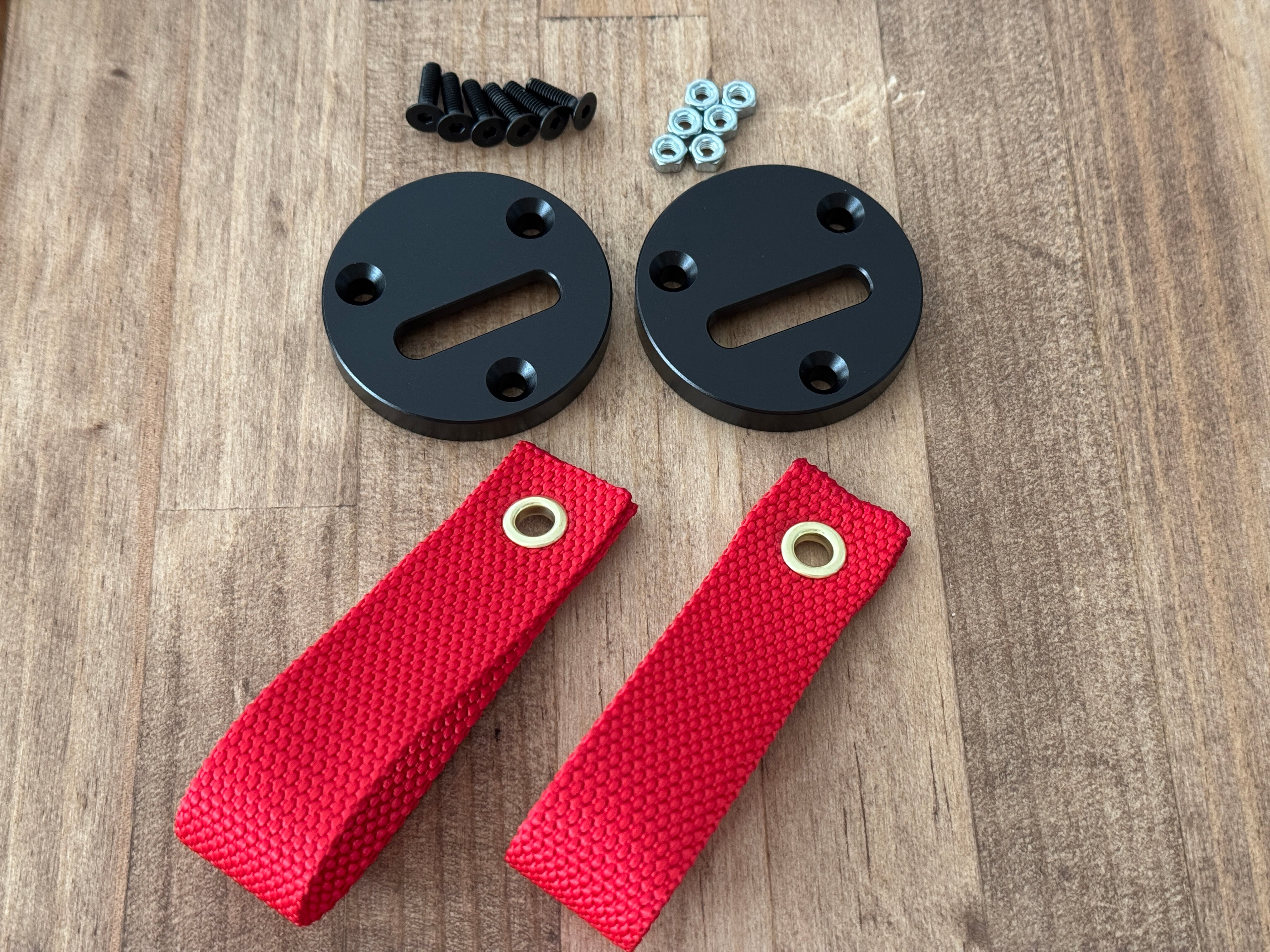旧車 For Vintage car, Racing car, MX5, Miata [NA8C NA6CE] Red color door straps and 8mmt strap holes ユーノスロードスター インナードア ハンドル ストラップホール8mm厚1台分(2枚セット)NA8C NA6CE 旧車 GTR ポルシェ等にも | EMBLISS Co.